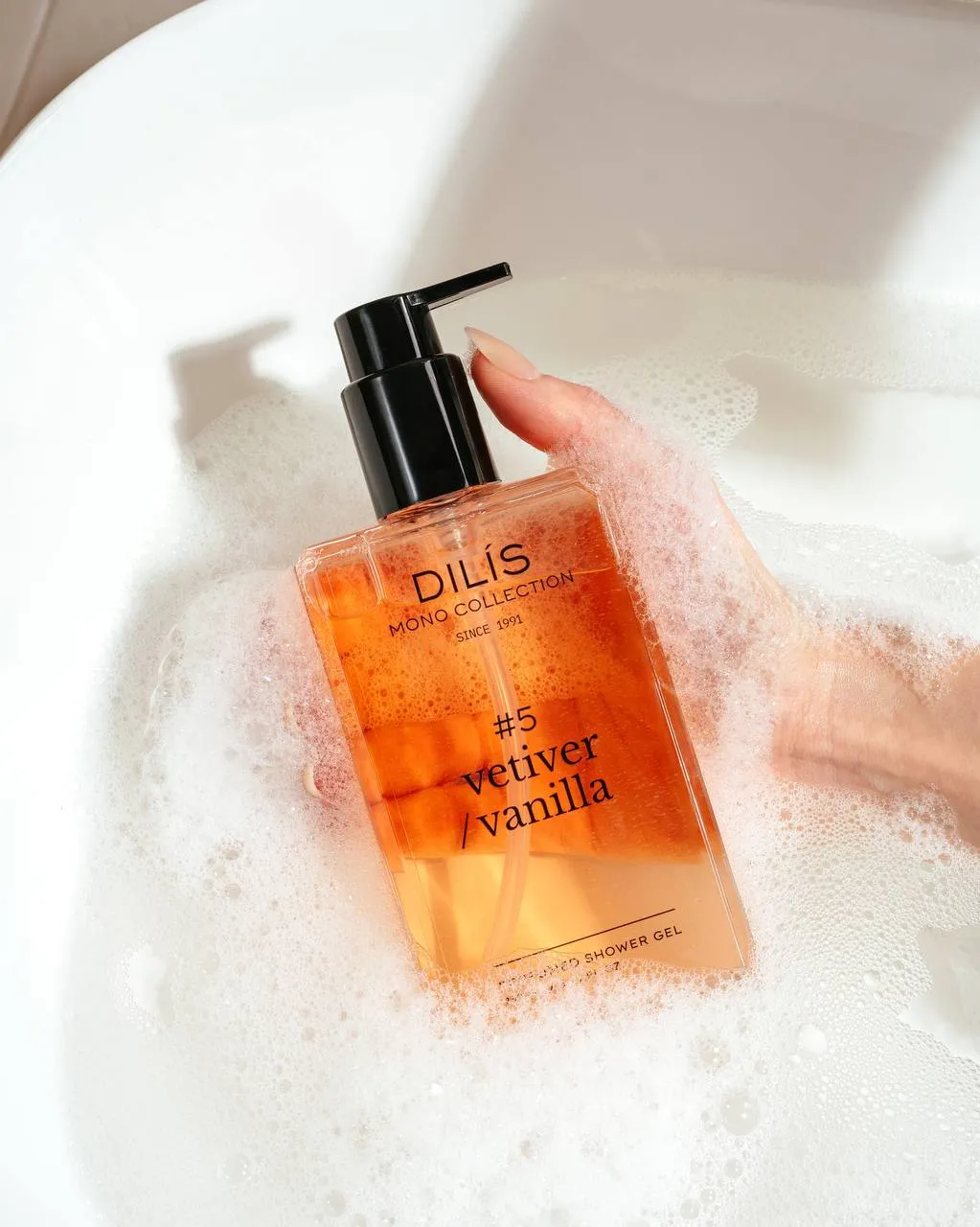 Способ применения: Нанесите гель для душа на влажные ладони или губку, вспеньте до создания густой пены, нанесите массирующими движениями на тело и смойте теплой водой. Для усиления стойкости аромата и создания обволакивающего шлейфа дополните образ духами коллекции DILIS MONO COLLECTION.